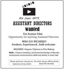 Q3  You are Damanjit Singh, a fresh graduate of film-making (BFA) from JTTI, Chandigarh. You saw the given advertisement in the newspaper and wish to apply for the position advertised. Write a letter Mili Johar Arts, along with your bio-data, expressing your interest in the advertised post. (CBSE Sample Question Paper 2023-24)